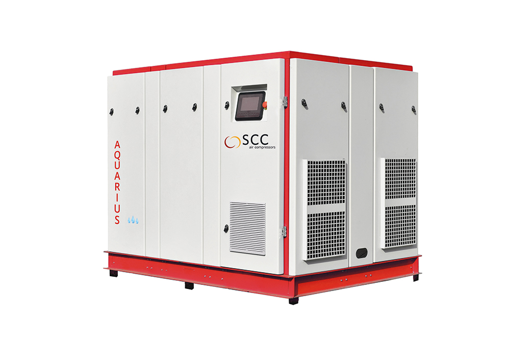 Vesivoideltu ruuvikompressori SCC Aquarius on toimintavarma ja laadukas vaihtoehto täysin öljyttömän paineilman tuottoon.
